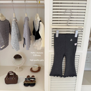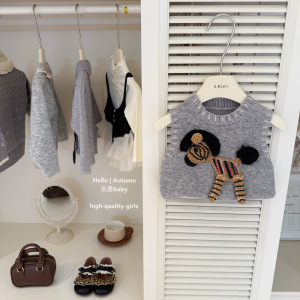 【乐恩童装】原创设计秋冬女童立体小马背心马甲灰色超模裤两件套