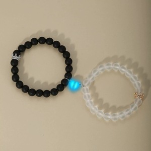 跨境欧美热销磨砂玻璃珠串珠夜光爱心磁吸扣情侣闺蜜手链手串礼物