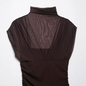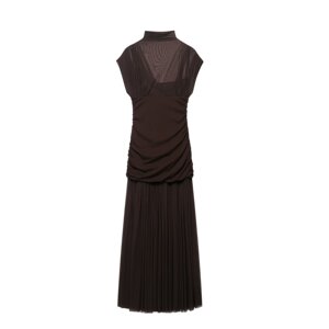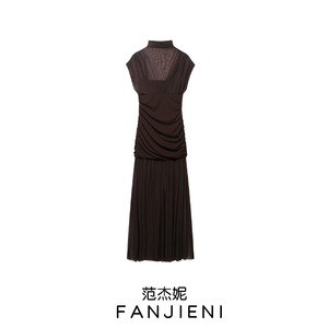 ZR外贸批发 欧美风女装 时尚气质百搭小众绢网拼接网纱长款连衣裙