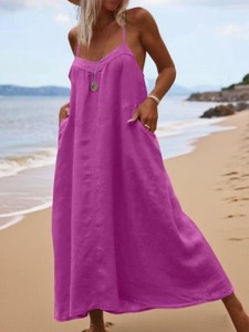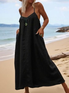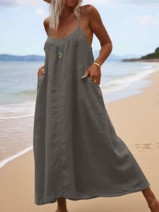 2025欧美跨境新款棉麻风休闲度假连衣裙夏季吊带连衣裙