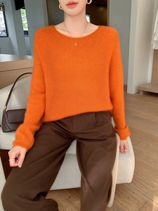 宽松廓形圆领羊绒衫女秋冬新款山羊绒+桑蚕丝无缝一线丝羊绒毛衣