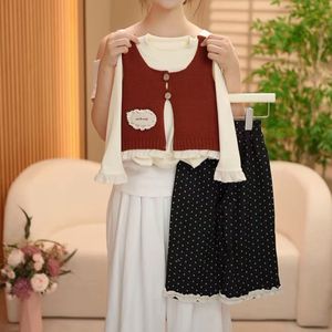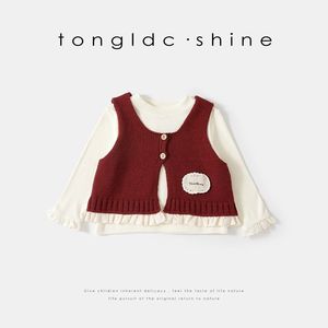 三件套(红色贴标针织马甲+打底衫+裤子)