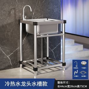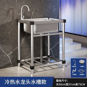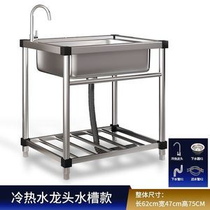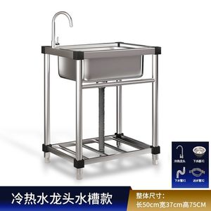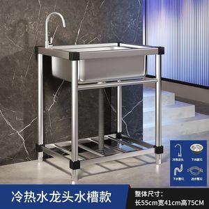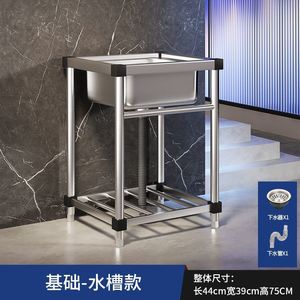商用厨房洗菜盆304不锈钢洗手盆带支架一体洗碗池家用水槽大单槽