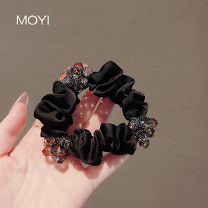 小众设计感气质扎马尾水钻大肠发圈时尚韩系缎面扎发高端耐用发绳