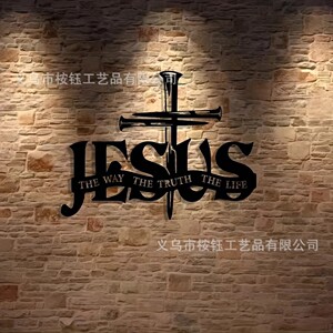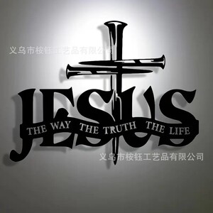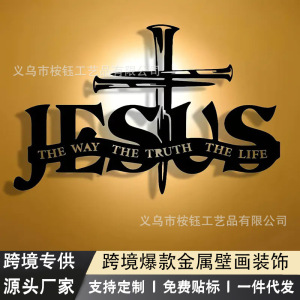 跨境亚马逊爆款金属壁画十字英文图形金属壁画装饰铁艺切割工艺品