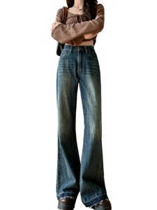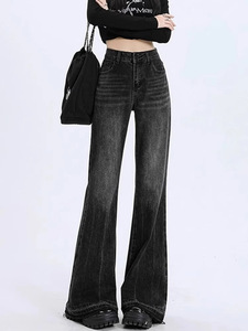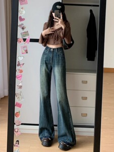 大码美式微喇牛仔裤女秋季胖mm复古设计感高腰宽松不贴腿喇叭裤子