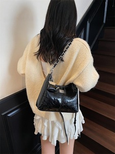 新款时尚大气链条腋下包女2025夏季小众百搭时尚漆皮单肩斜挎包包