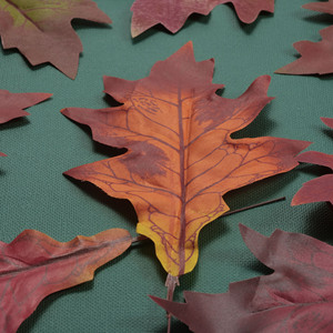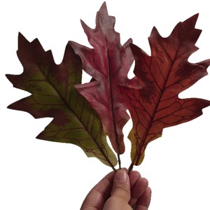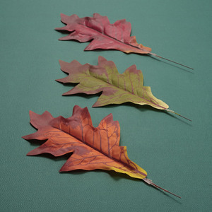 高品质仿真单支丝印橡树叶秋色枫叶场景布置万圣节花环装饰配件叶