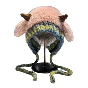 针织羊角帽【粉色】