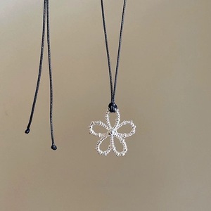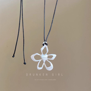 镂空花朵黑绳抽拉可调节项链简约百搭简约气质长款毛衣链秋冬配饰