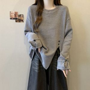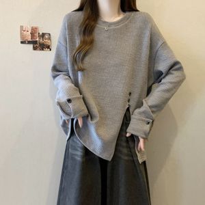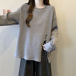 大码纹理感坑条开叉长袖上衣女2025秋季新款宽松显瘦时尚打底衫女