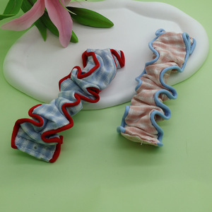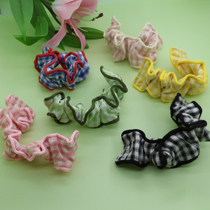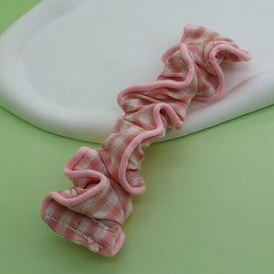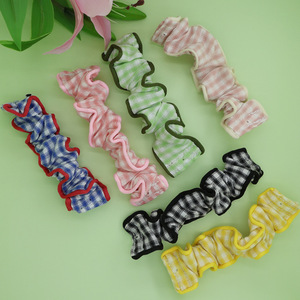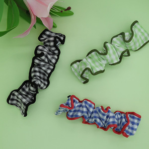 春夏多巴胺手机挂绳撞色格子褶皱大肠弹力发圈手腕带布艺手提带