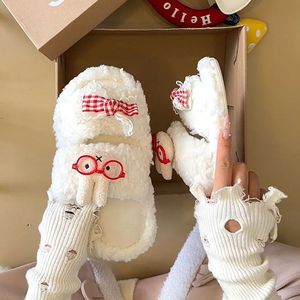 可爱卡通毛毛拖鞋女2025秋冬新款外穿防滑毛茸茸保暖一字个性棉拖