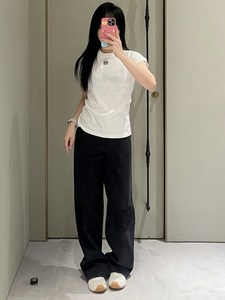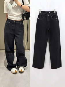 L.Y.W直筒牛仔裤女黑灰色刺绣幂同款阔腿显瘦通勤长裤女2025秋款