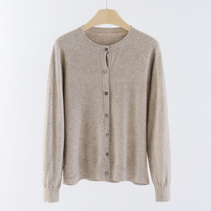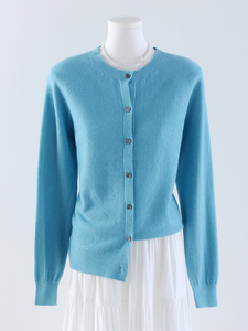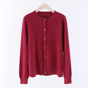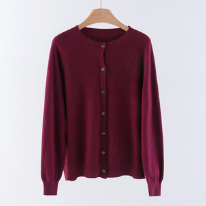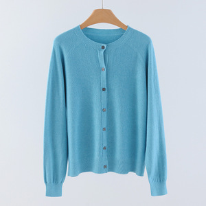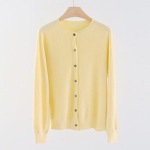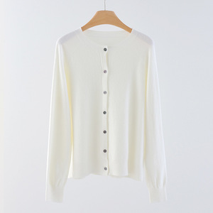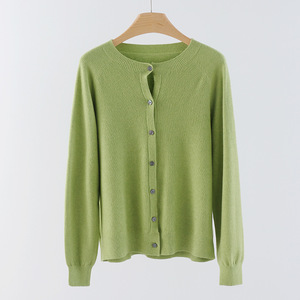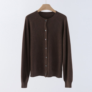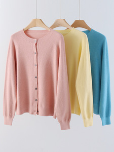 无缝一体秋季慵懒风针织开衫圆领纯色长袖女上衣温柔百搭毛衣外套