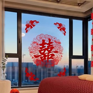 喜字静电贴结婚专用婚房布置装饰婚礼窗户玻璃窗花贴囍字贴纸全套