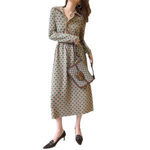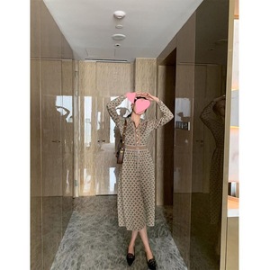 2025新款早春气质小香风针织连衣裙秋冬装女法式复古格子长裙