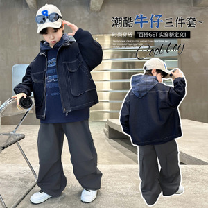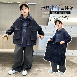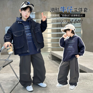 男童秋季套装2025新款潮酷儿童帅气衣服春秋装男孩时髦休闲三件套