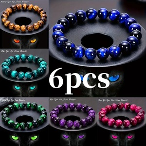 跨境爆款temu希音亚马逊仿虎眼石弹力串珠彩色虎眼石手链现货批发