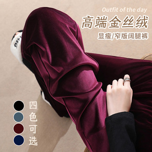 金丝绒窄版阔腿裤女2025年新款高腰休闲垂感直筒丝绒女裤爆款百搭