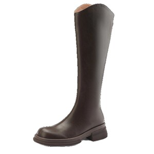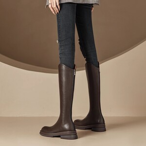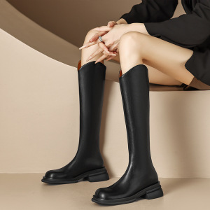 现货秒发~长筒靴2025冬加绒显瘦不过膝V口长靴硬筒厚底高筒骑士靴
