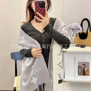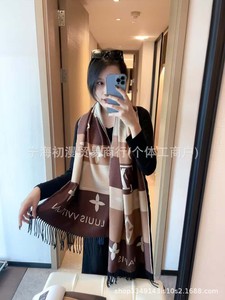 正确仿羊绒围巾老花双面提花新款秋冬女加厚加长字母款披肩仿羊毛
