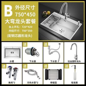 拉丝不锈钢【7545】单槽-【特惠家用】大弯龙头全套