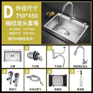 拉丝不锈钢【7545】单槽-【升级豪华】抽拉龙头全套