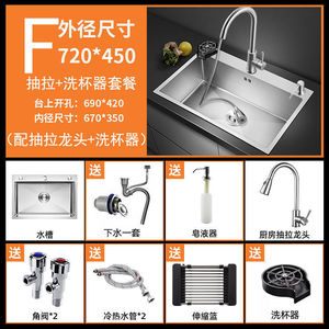 拉丝不锈钢【7245】单槽-【旗舰】抽拉+洗杯器全套