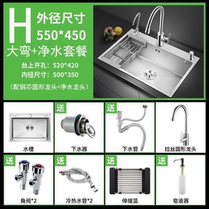 拉丝不锈钢【5545】单槽-【奢华家用】大弯+净水全套