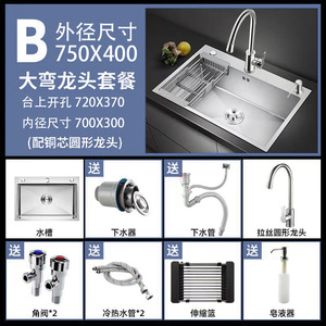 拉丝不锈钢【7540】单槽-【特惠家用】大弯龙头全套
