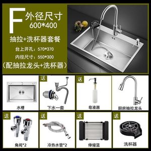 拉丝不锈钢【6040】单槽-【旗舰】抽拉+洗杯器全套