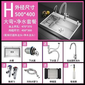 拉丝不锈钢【5040】单槽-【奢华家用】大弯+净水全套