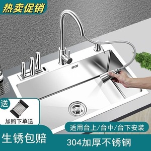 加厚304不锈钢水槽单槽台中盆厨房手工家用大水池洗菜盆洗碗槽