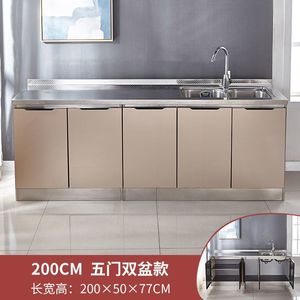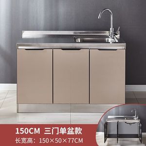 不锈钢厨房橱柜简易灶台柜橱柜一体家用厨房柜组装经济型整体餐柜