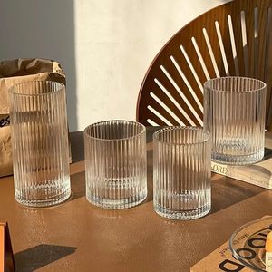 简约条纹玻璃杯冰美式拿铁咖啡杯果汁杯冷饮杯家用牛奶杯水杯