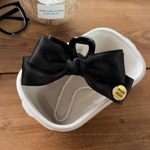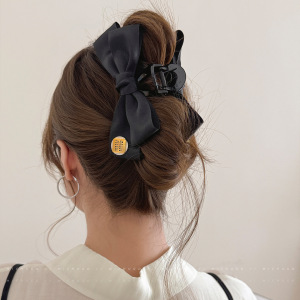 法式黑色蝴蝶结发夹女后脑勺盘发抓夹温柔气质鲨鱼夹发卡百搭发饰