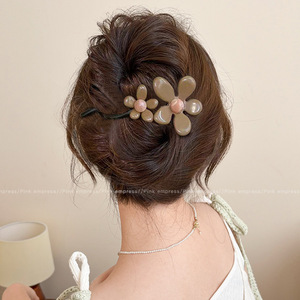 2#奶茶色~干枯玫瑰圆珠扭扭夹