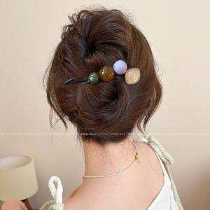 1#深咖色~干枯玫瑰圆珠扭扭夹