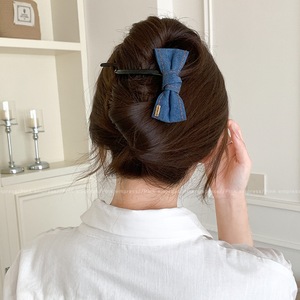 1#【牛仔蓝】蝴蝶结扭扭夹(底夹约10.5cm蝴蝶结10cm)