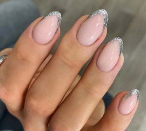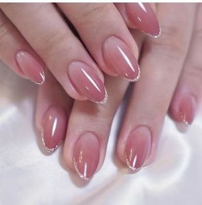 新款跨境美甲贴片欧美风格经典法式闪粉中款椭圆形穿戴甲甲片批发
