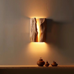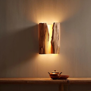 侘寂风实木壁灯原木卧室床头民宿餐厅灯具氛围灯复古茶室创意设计