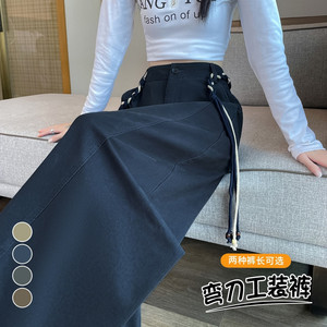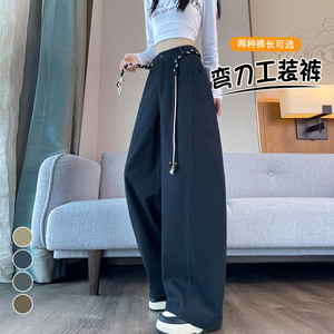 现货现货2025秋季新款弯刀工装裤束脚阔腿两穿休闲香蕉裤运动裤女