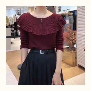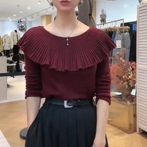 一件代发2025秋季新款时尚轻熟法式减龄一字肩荷叶边洋气小衫上衣