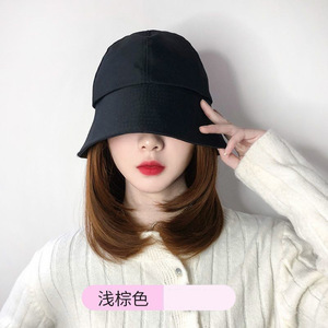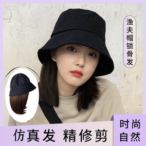 假发帽子女水桶潮流2025夏季新款渔夫帽中长发内扣时尚一体锁骨发