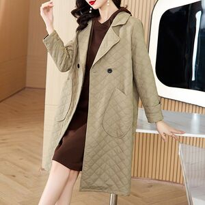 2025女士风衣秋冬时尚外套女韩版小众设计感菱形格中长款宽松大衣