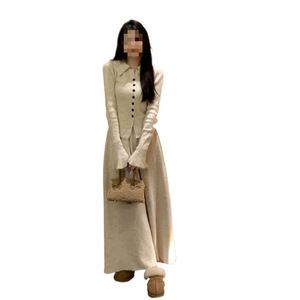 polo领针织毛衣连衣裙子女2025新款秋冬大衣内搭修身气质长裙套装