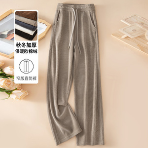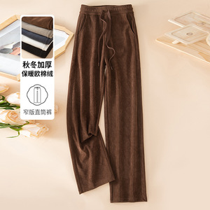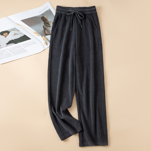 灰色雪尼尔阔腿裤女夏秋冬季高腰直筒休闲百搭松紧腰窄版显瘦裤子