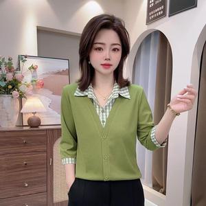 2025翻领减龄百搭春夏新款女装衬衫显瘦拼接格子领假两件女士上衣