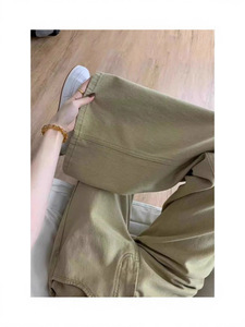 美式复古卡其色微喇牛仔裤女夏季低腰垂感显瘦百搭休闲直筒拖地裤